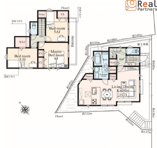 | 面積(平米) | 土地:82.9 建物:102.44 | 建蔽/容積率 | 建ぺい率:60% 容積率:100% |