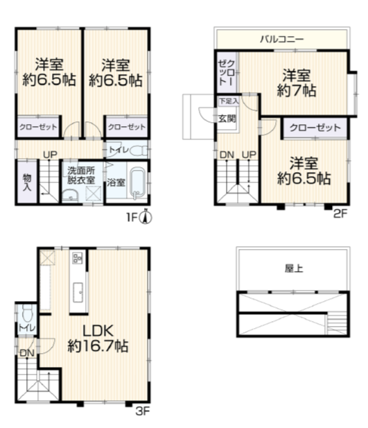 ◆全部屋6帖以上の広々4LDK、屋上も完備♪