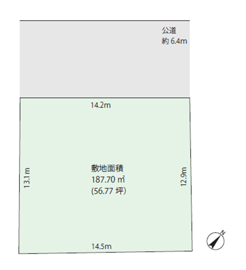 接道状況 一方 (南西 6.4m 公道)