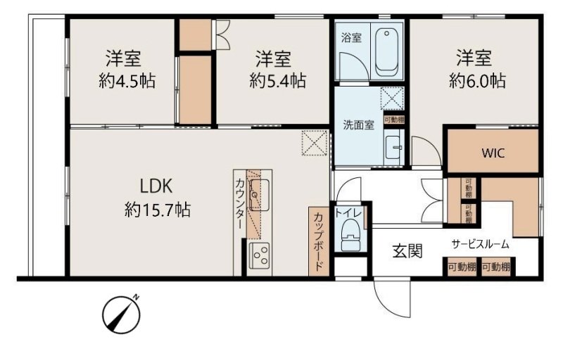 | ◆全居室採光!明るい三方角住戸♪◆収納充実!WIC+サービスルーム♪◆公園・買物便利な青葉台エ... | ||||||||||||||||||||||