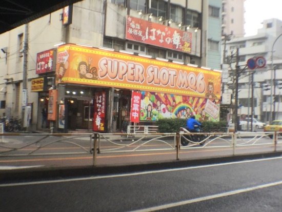 改札の横にはパチンコ店があります。 |