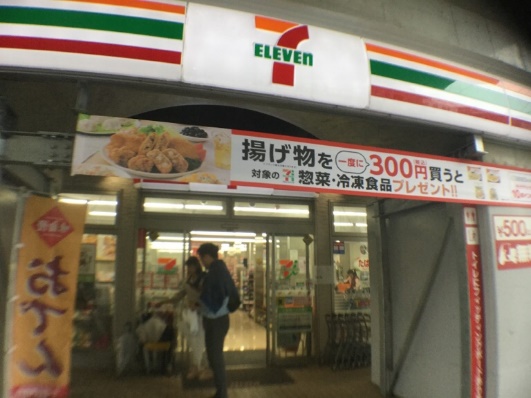 改札の向かいにはコンビニがあります。 |