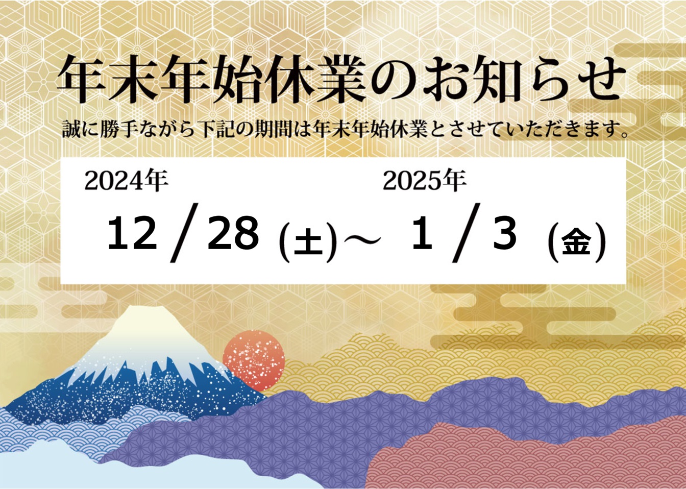 - 年末年始休業のお知らせ